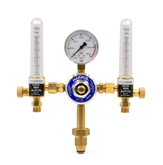 Model 821 Preset Argon Cylinder Pressure Regulator Fitted w 2 x 30LPM Flowmeter s