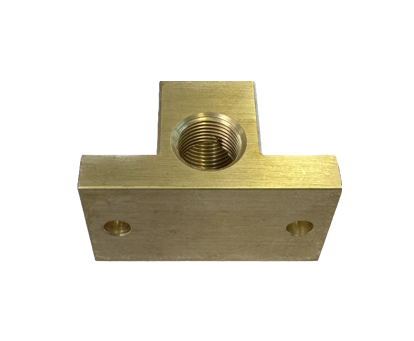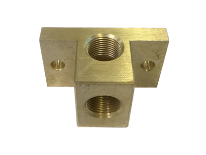Brass Elbow Block with 2 x 3/8" BSP ports.