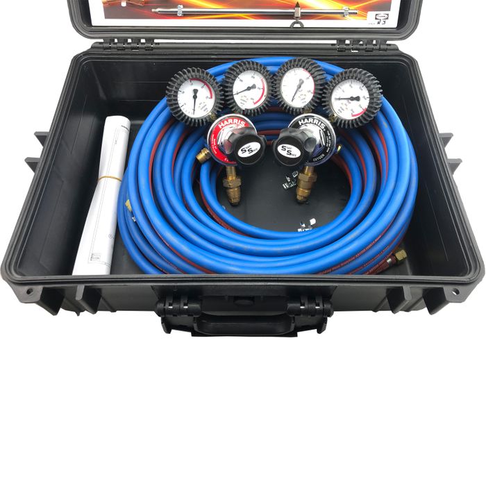Original Professional PREMIUM Kit Oxy/Acet Model 825 Snap Safe regs includes cutting attachment, handle with flash-guards, mixer, tips, gouging tip, roller guides flashback arrestors & hose in a storm case B/H/C/W/G