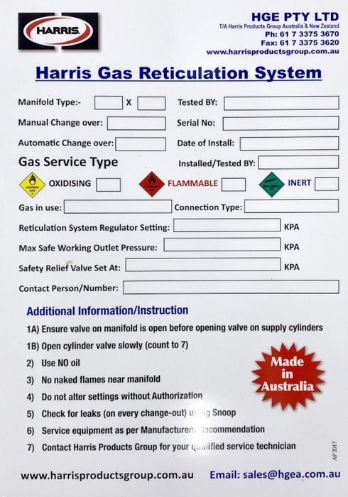 - 1 x 1 Acetylene Manifold, 150kPa (1.8m, 1/2" Tube)