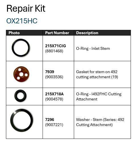 O ring kit to suit 493HC; 733HC + 273HC cutting attachments