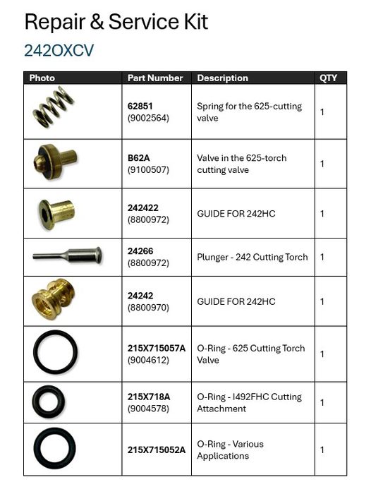- Valve Kit - Oxygen Cutting (242 Torch)