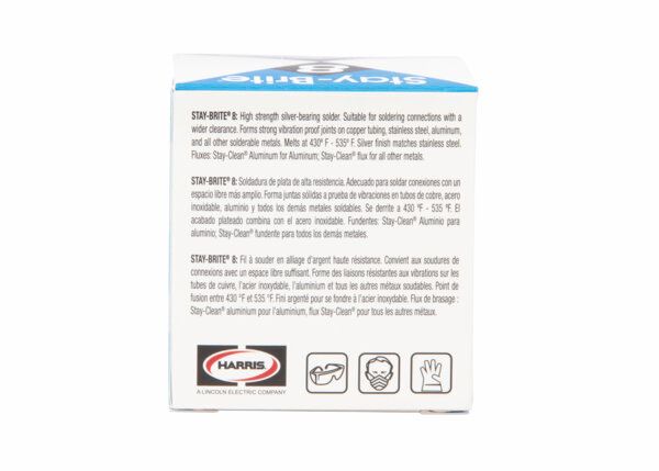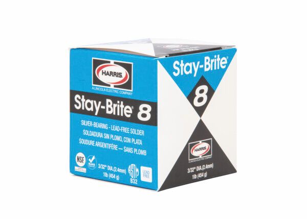 Stay Brite 8® tin-silver lead-free solder with higher silver content provides a melting range while producing strong, ductile connections on copper, brass, steel and stainless steel.