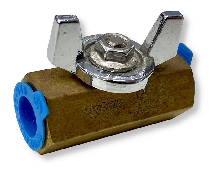 1/4" Hy-Lok Ball Valve w Butterfly Handle (Brass, 1/4" NPTF)