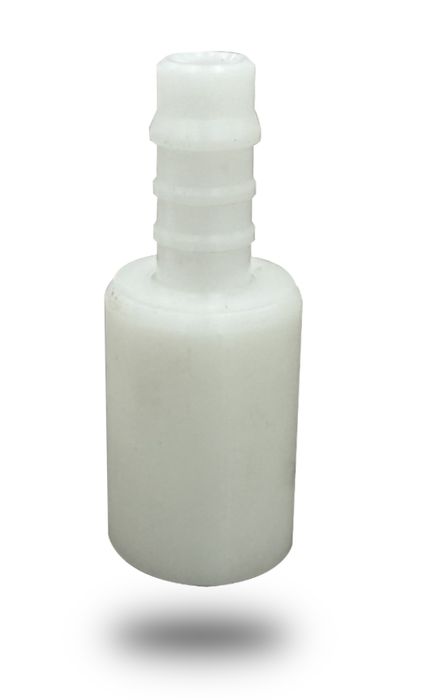PLASTIC VENT FITTING. SCREWS ONTO SRV WITH A BARBED 12 MM OUTLET FOR VENT TUBE TO SLIP ON.